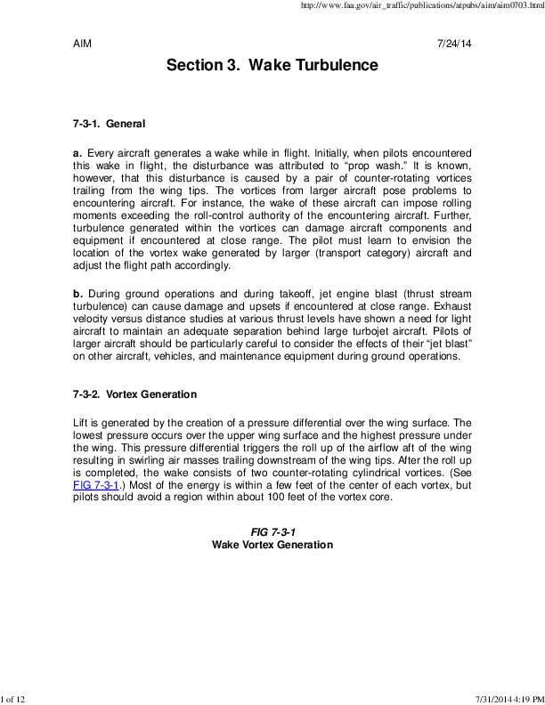 AIM, Chapter 7, Section 3 - Wake Turbulence