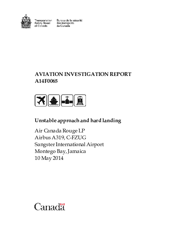 AIR A14F0065: Unstable approach & hard landing A319 (C-FZUG), Montego Bay Jamaica, 10 May 2014