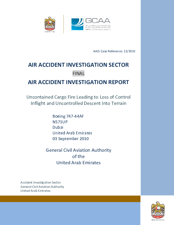 Air Accident Final Report 13/2010: B744 Dubai 2010 cargo fire and uncontrolled descent into terrain