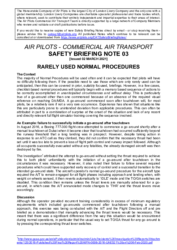 Air Pilots Safety Briefing Note 03 - Rarely Used Normal Procedures