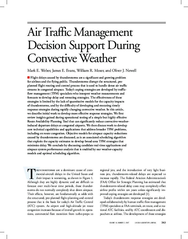 This document reviews insights gained during operational testing of a Route Availability Planning Tool that can significantly reduce convective-weather induced departure delays at congested airports and discusses work to develop core technical capabilities and applications that address broader traffic flow management problems, including en route congestion.