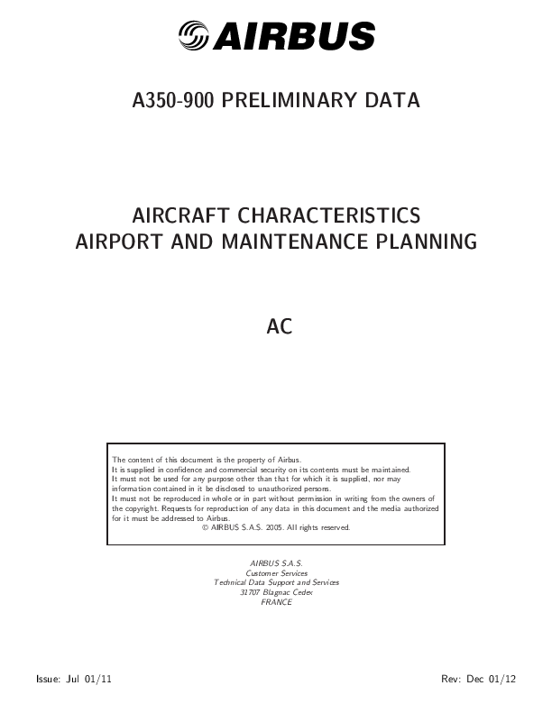 Airbus A359: Airplane characteristics for aiport planning AC, 01 Dec 2012