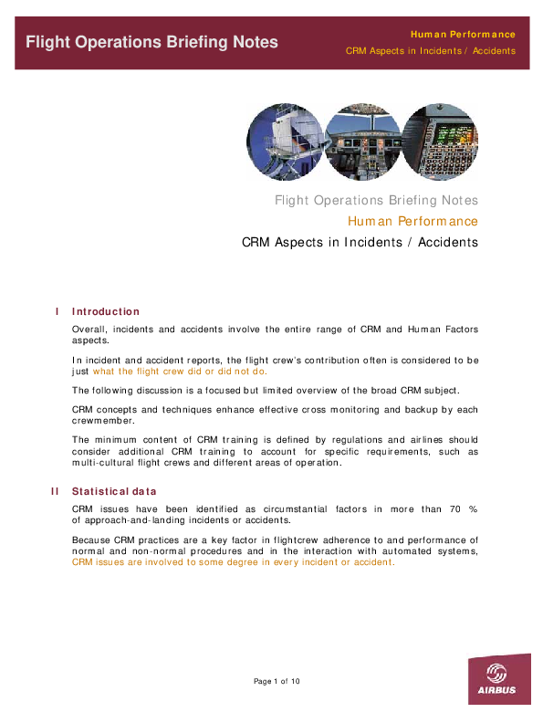 Airbus FOBN - Human Performance - CRM Aspects in Incidents / Accidents