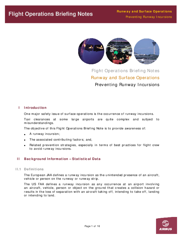 Airbus FOBN - Runway and Surface Operations - Preventing Runway Incursions