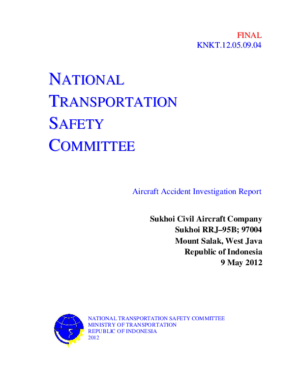 Aircraft Accident Investigation Report, SU95 CFIT, Indonesia, 2 May 2012