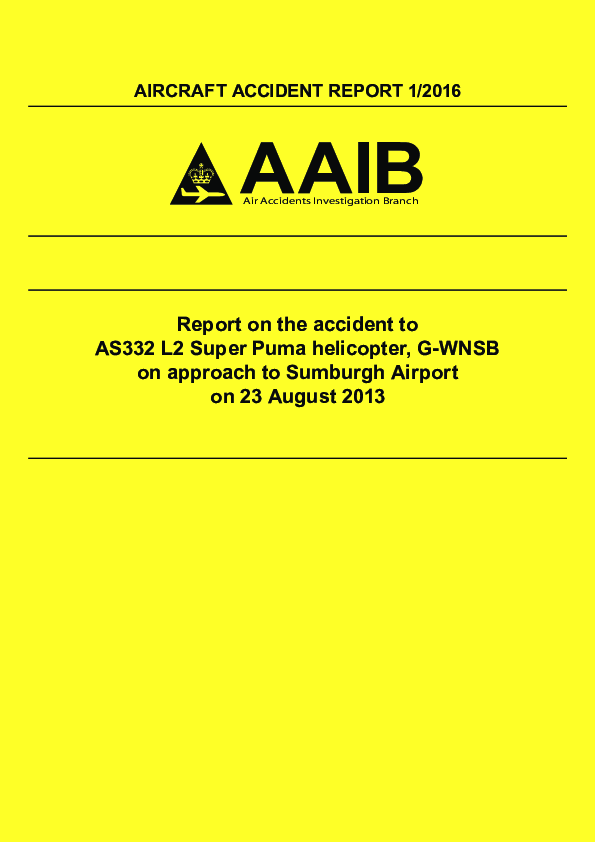 Aircraft Accident Report 1-2016, AS3B, Sumburgh Airport, 23.08.2013