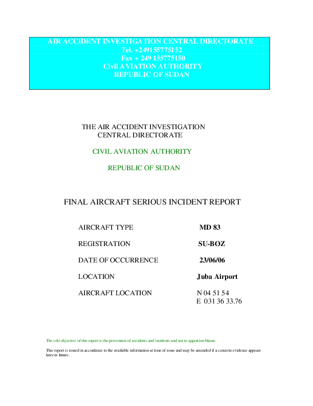 Aircraft Accident Report - MD83 runway excursion, Juba, Sudan, 23 June 2006