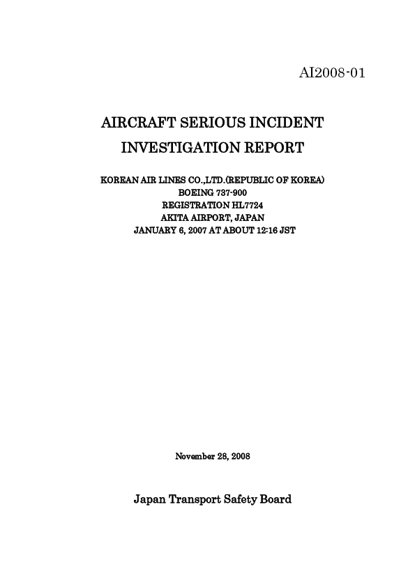 Aircraft Serious Incident Investigation Report AI2008-01, B739 Taxiway landing, Akita, Japan, Januar