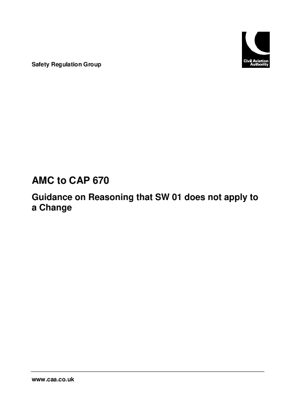 AMC to CAP 670 Guidance on Reasoning that SW 01 Does Not Apply to a Change
