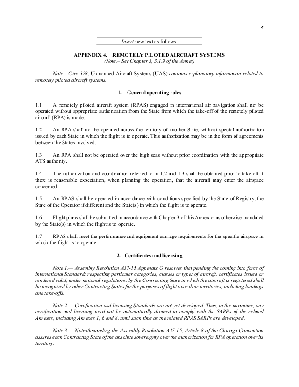 Amendment 43 to Annex 2 'Rules of the Air' - Appendix 4 - Remotely Piloted Aircraft Systems