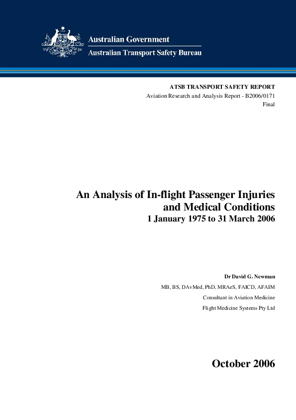 The purpose of this study was to determine the prevalence, nature, type and extent of medical problems and injuries occurring in passengers on board civil registered aircraft.