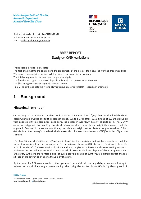 Annex 2 to Final report, A320 (9H-EMU), vicinity Paris CDG France, 23 May 2022, providing a Meteo France report on short term (within 30 minutes) change in QNH.