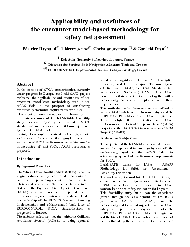 The objective of the I-AM-SAFE study [IAS] was to assess the applicability and usefulness of the methodology used in the ACAS field, for establishing quantified performance requirements for STCA.