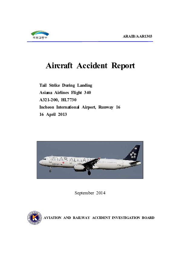 ARAIB/AAR1303, A321 tailstrike during landing, Incheon South Korea, 16 April 2013