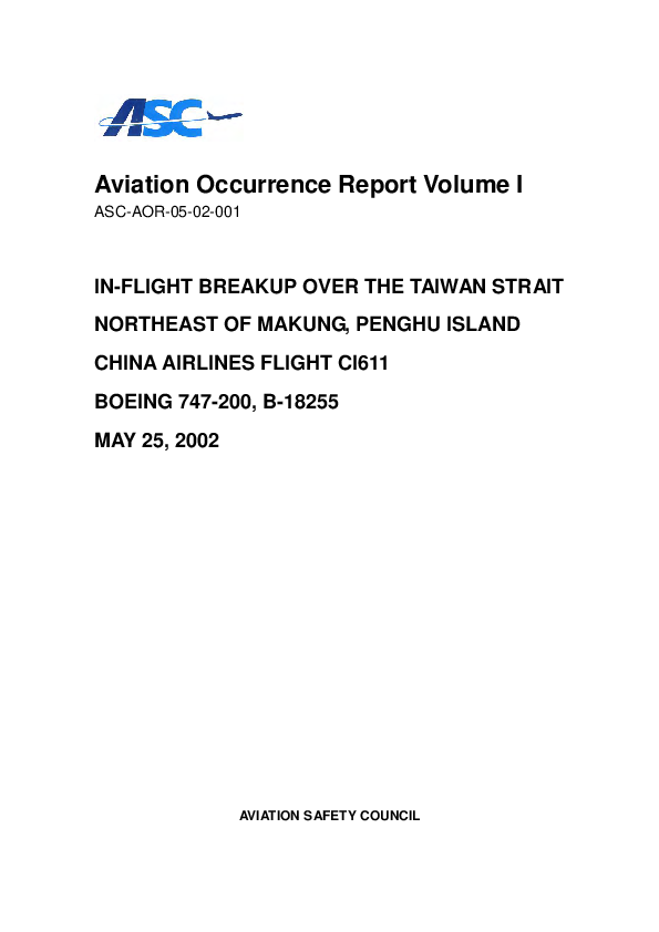 ASC-AOR-05-02-001, Vol 1 & 2, B742 In flight structural failure, Penghu Island, Taiwan, 22 May 2002
