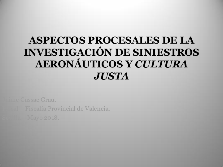Aspectos Procesales De La Investigacion De Siniestros Aeronauticos y Cultura Justa