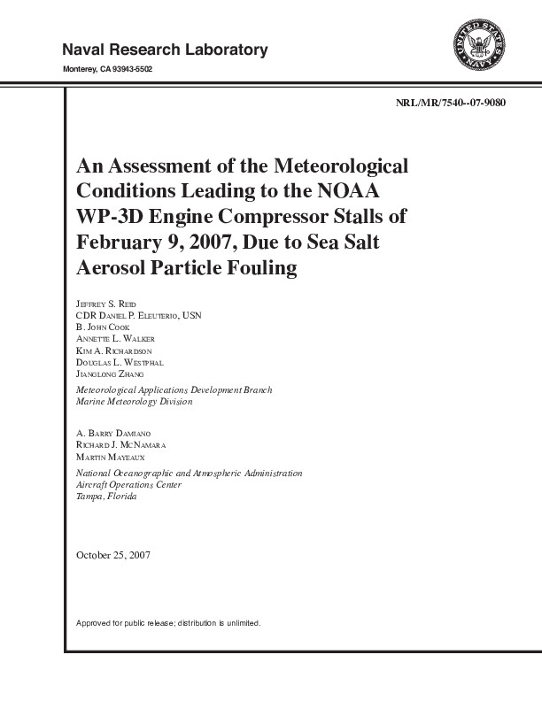 An Assessment of the Meteorological Conditions Leading to the NOAA WP-3D Engine Compressor Stalls of February 9, 2007, Due to Sea Salt Aerosol Particle Fouling