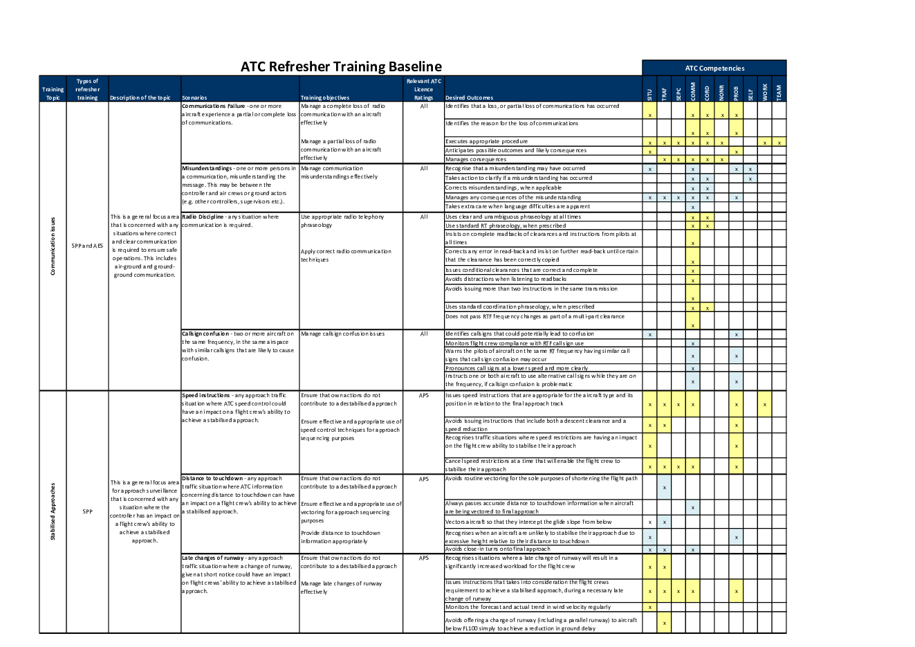 ATC Refresher Training Baseline - scenario matrix table
