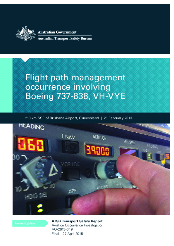 ATSB AO-2013-049 flight path management occurence B737, Brisbane, 25/02/2013