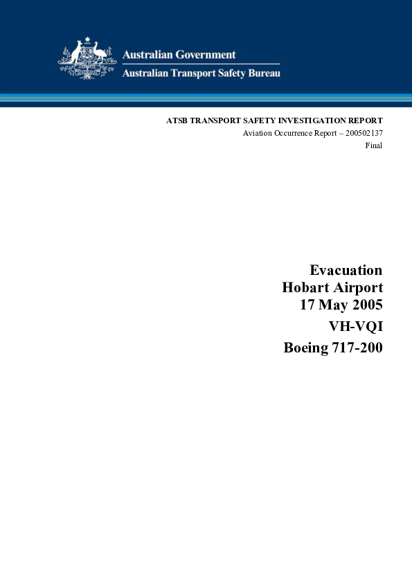 Report into the evacuation of a B717 on the ground at Hobart following an engine fire on start-up