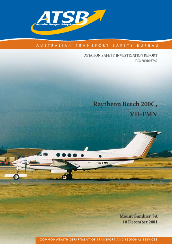 AVIATION SAFETY INVESTIGATION REPORT BO/200105769 Raytheon Beech 200C, VH-FMN Mount Gambier, SA 10 December 2001