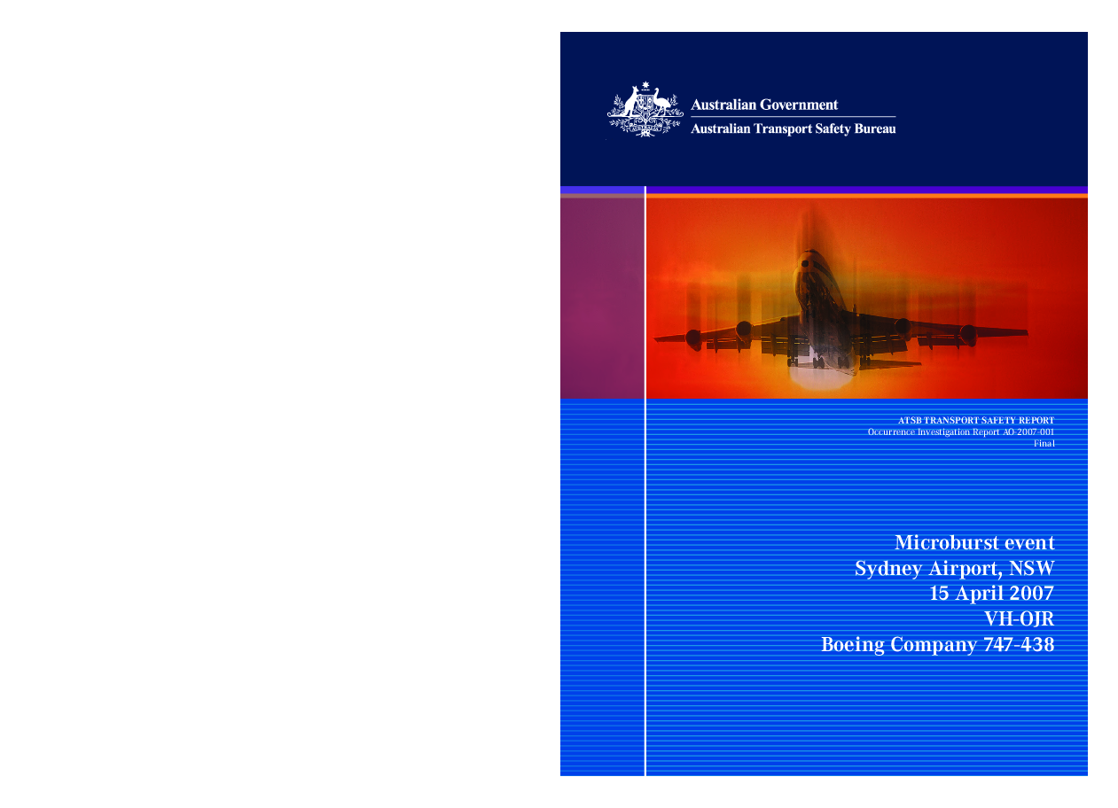 ATSB - Occurrence Investigation Report AO-2007-001, B744 Low level windshear Sydney Australia, 2007