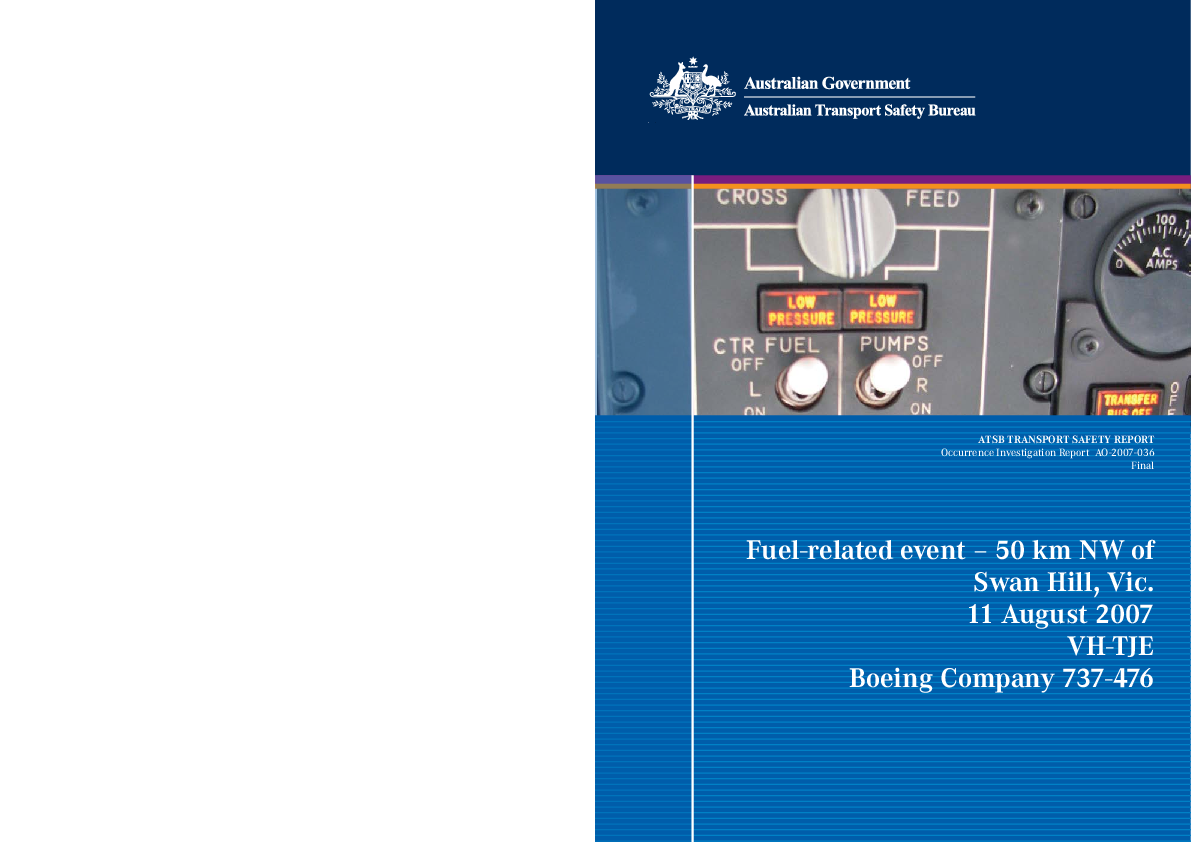 ATSB - Occurrence Investigation Report AO-2007-036 Fuel-related event B734