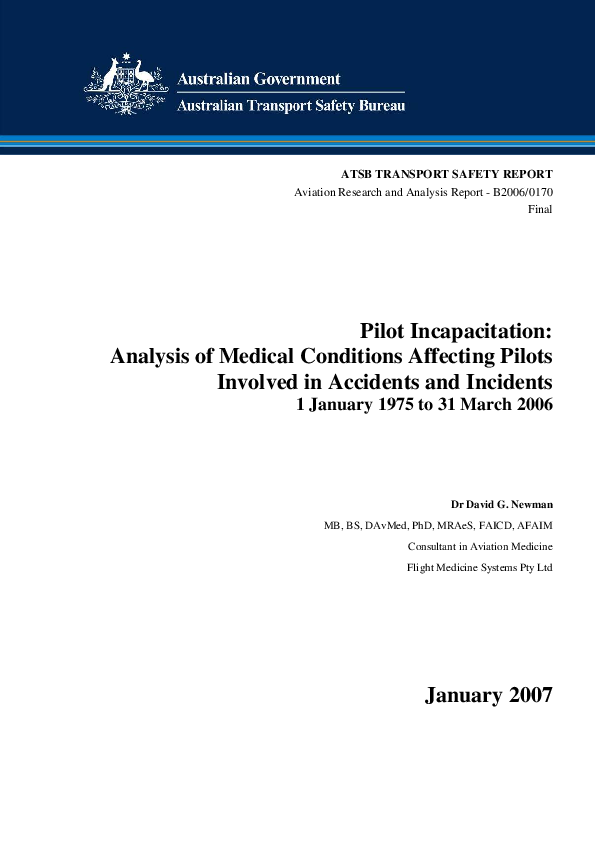 ATSB - Research Report: Pilot Incapacitation, Jan 2007