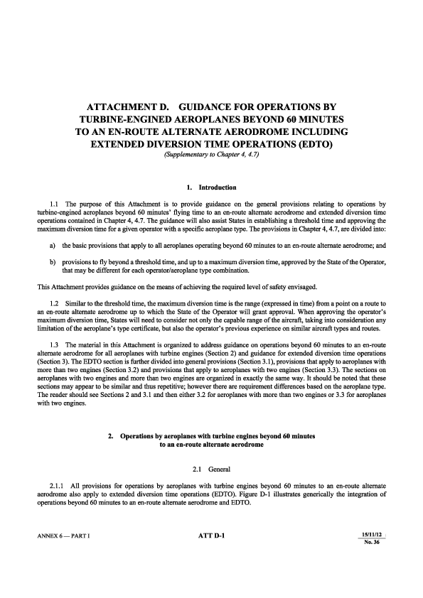 Guidance on operations by turbine engined aeroplanes beyond 60 minutes to an en-route alternate aerodrome including extended diversion time operations (EDTO)