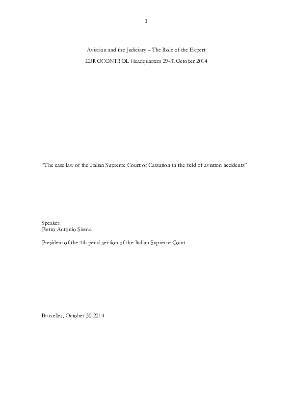 This document represents the case law of the Italian Supreme Court of Cassation in the field of aviation accidents, a paper on the penal Italian jurisprudence concerning the aeronautic sector.