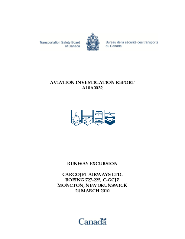 Aviation Investigation Report A10A0032, B722 runway excursion, Moncton New Brunswick, 24 Mar 2010