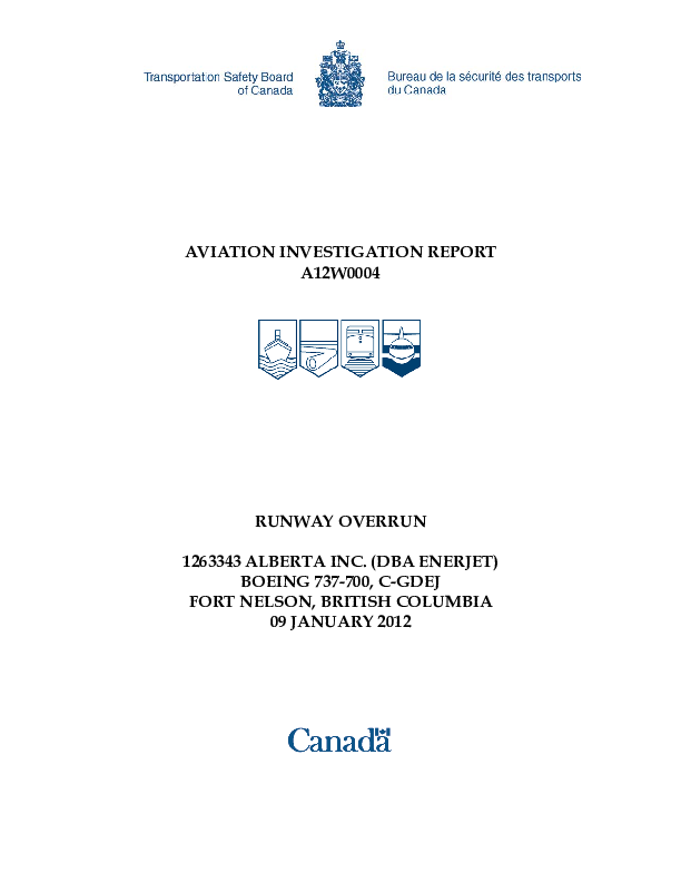 Aviation Investigation Report A12W0004 - B737 runway overrun, Ft. Nelson, 9 Jan 2012