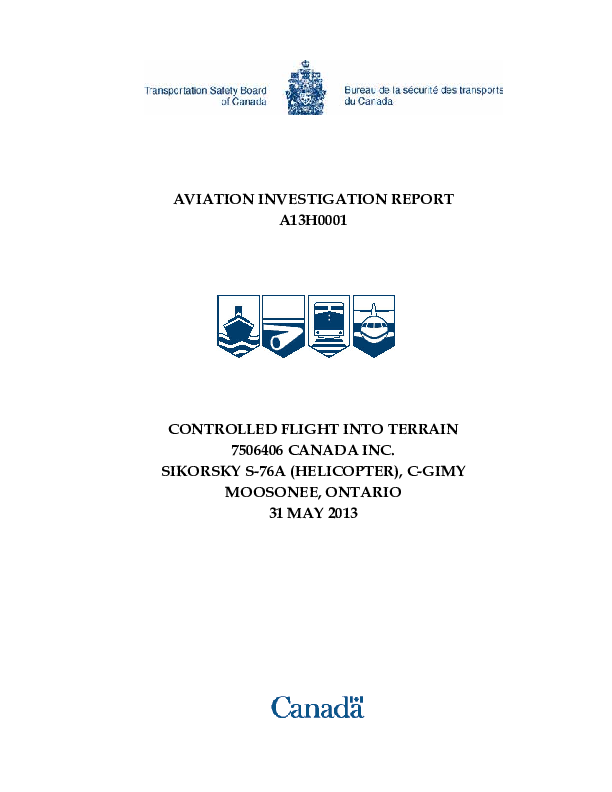 AVIATION INVESTIGATION REPORT, A13H0001, S76, vicinity Moosonee ON Canada, 2013