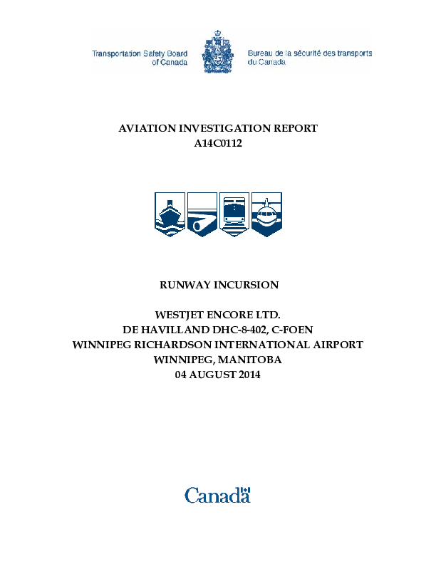 Aviation Investigation Report A14C0112 Runway Incursion DH4D & B737 Winnipeg 2014