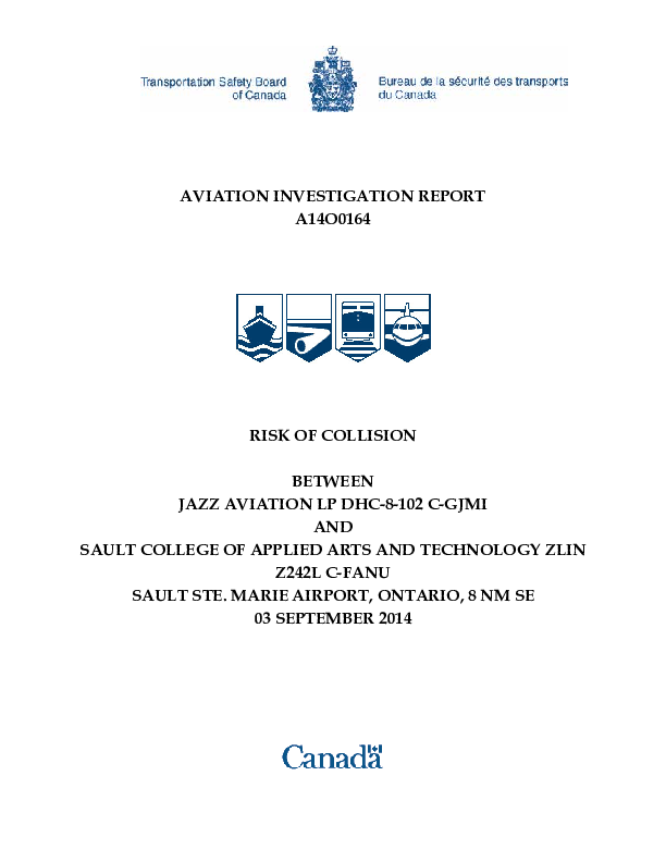 Aviation Investigation Report A14O0164 Risk of Collision between DH8A and Z42 Canada 2014