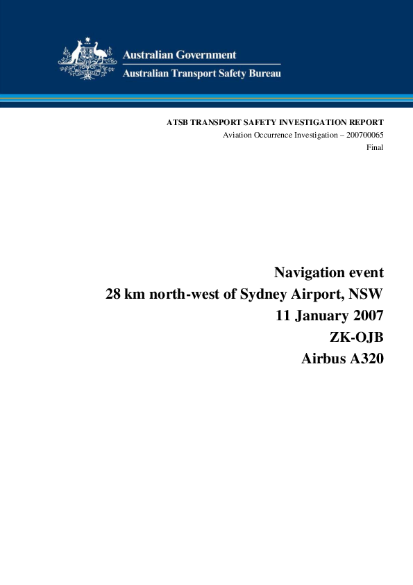 Aviation Occurrence Investigation “ 200700065, Navigation event, A320 near Sydney Airport, 11 Jan 20