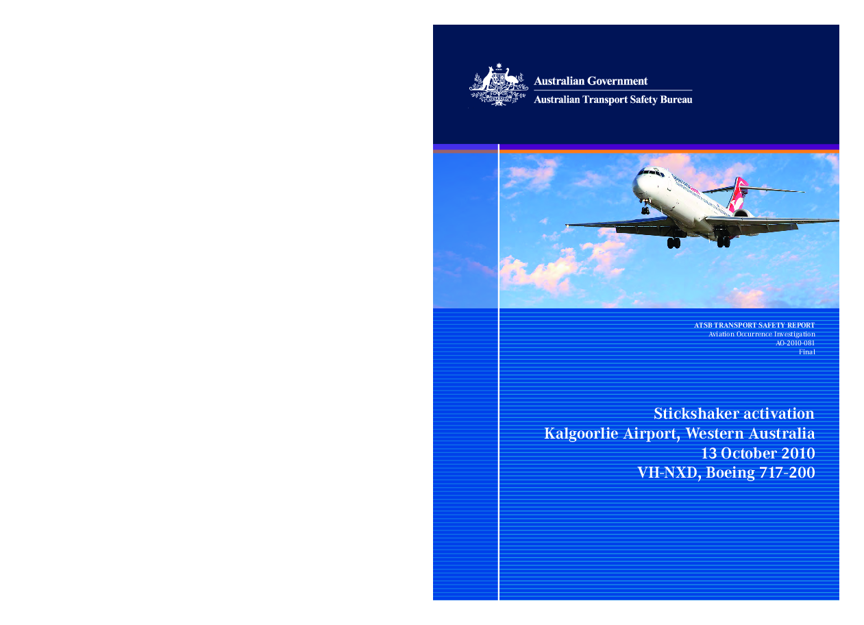 Aviation Occurrence Investigation AO-2010-081, B712 Stickshaker activation, Kalgoorlie Australia, 13