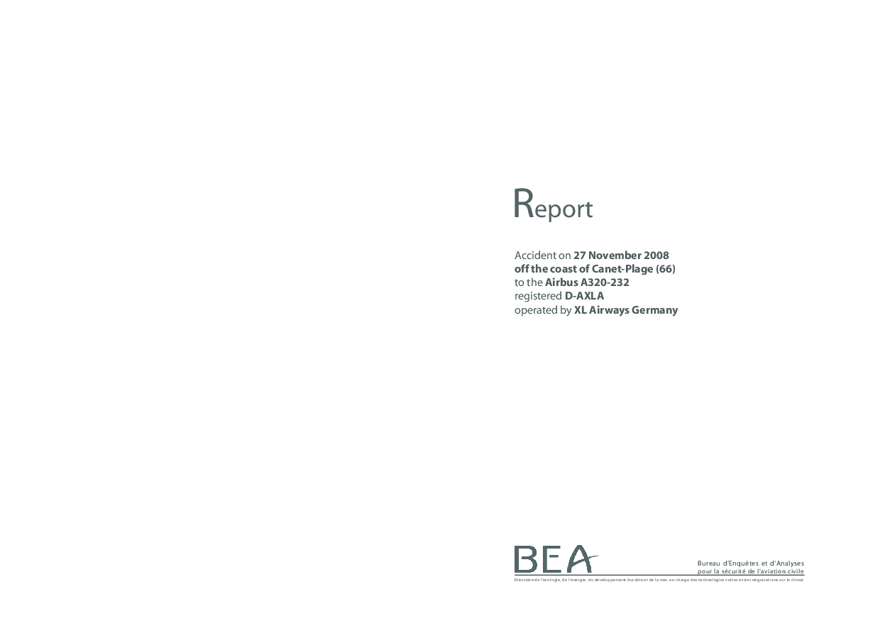 BEA Accident Report d-la081127: A320 LOC, Canet Plage, Nov 2008