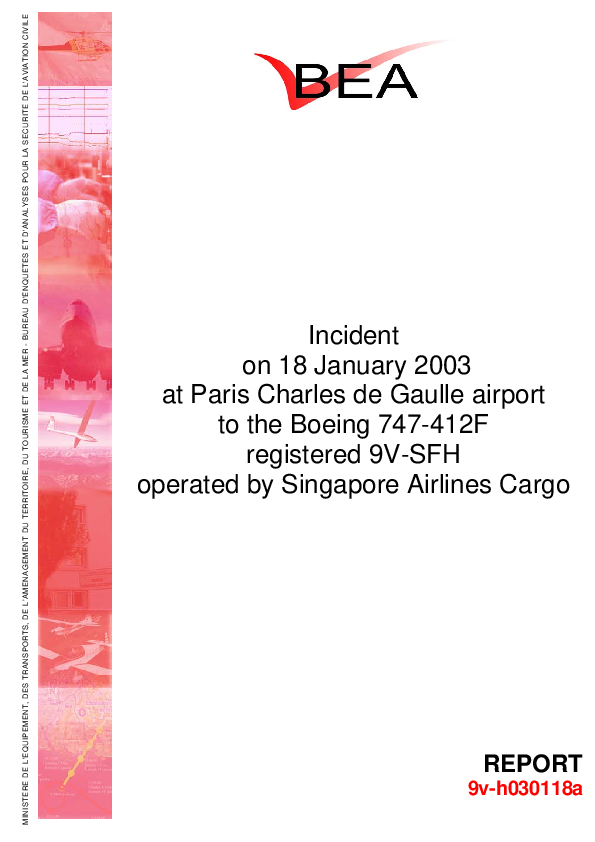 BEA Report 9v-h030118a, B744 ground colission with anti-icing equipment at CDG Paris, 18 Jan 2003