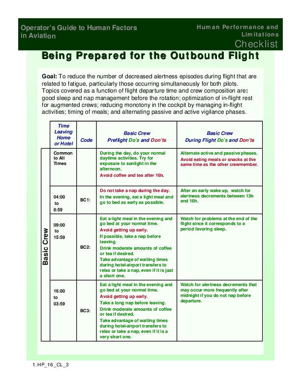 Being Prepared for the Outbound Flight - Checklist