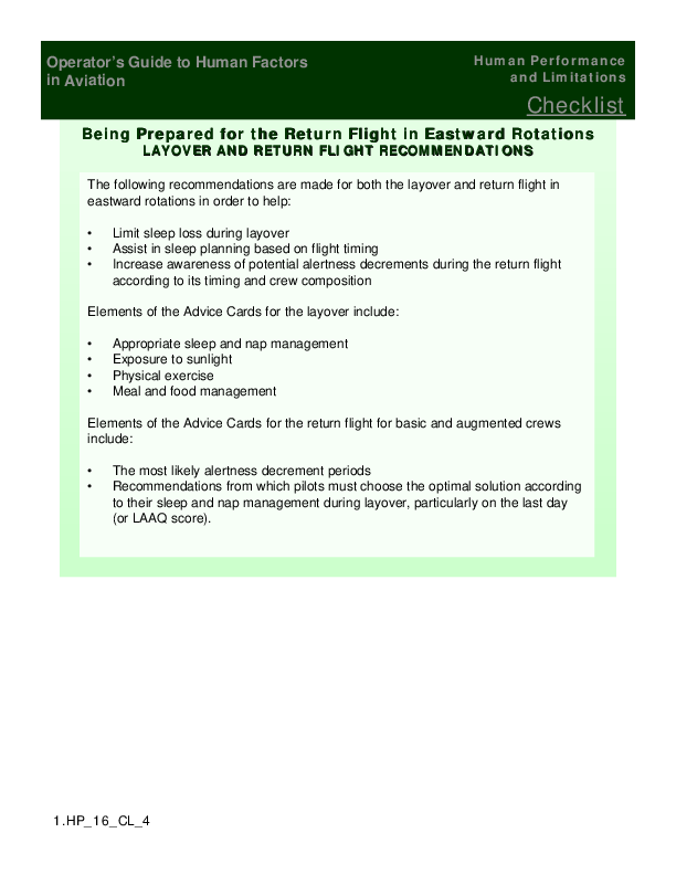 Being Prepared for the Return Flight in Eastward Rotations - Checklist