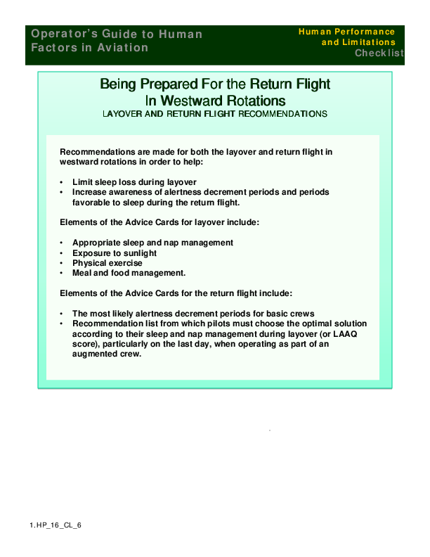 Being Prepared for the Return Flight in Westward Rotations - Checklist