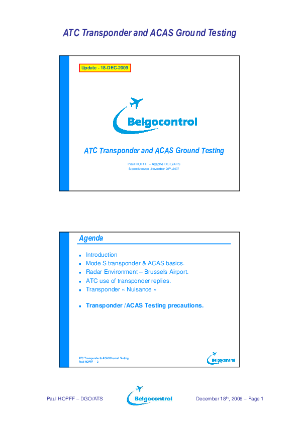 Powerpoint presentation on ATC Transponder and ACAS ground testing.