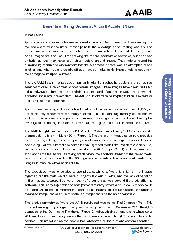 An article in the AAIB 2016 Annual Safety Review about the use of drones un accident investigations.