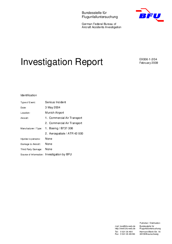 BFU EX006-1-2/04, Serous Incident, Runway Incursion between AT45 and B733, Munich Airport, 3 May 200