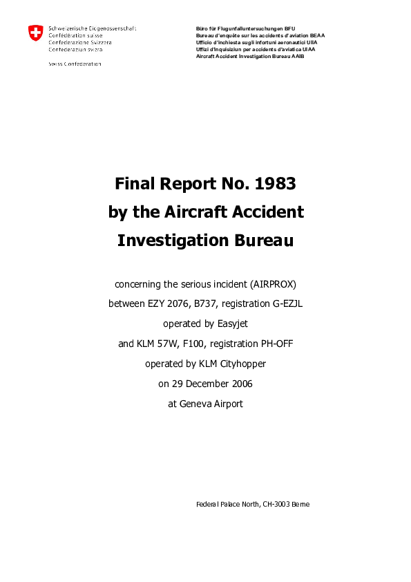 BFU - Final Report No. 1983 serious incident (AIRPROX), B737/F100, 29 Dec. 2006, Geneva Airport
