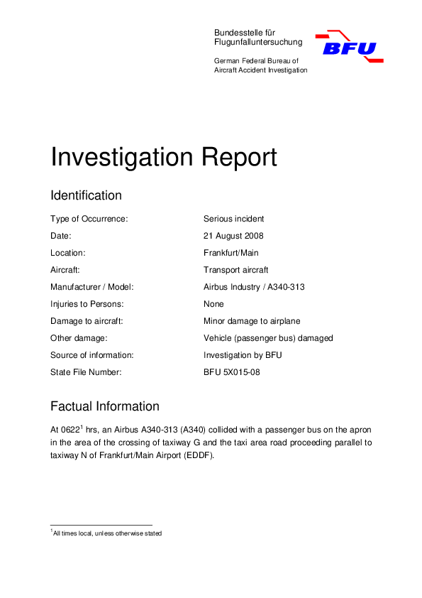 BFU Report 5X015-08, A343 collision with stationary bus, Frankfurt, Germany, 21 Aug 2008