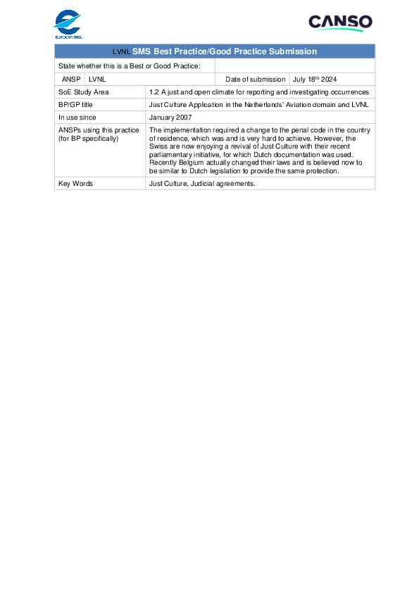 BP SA 1.2 Just Culture Application in the Netherlands’ Aviation domain and LVNL