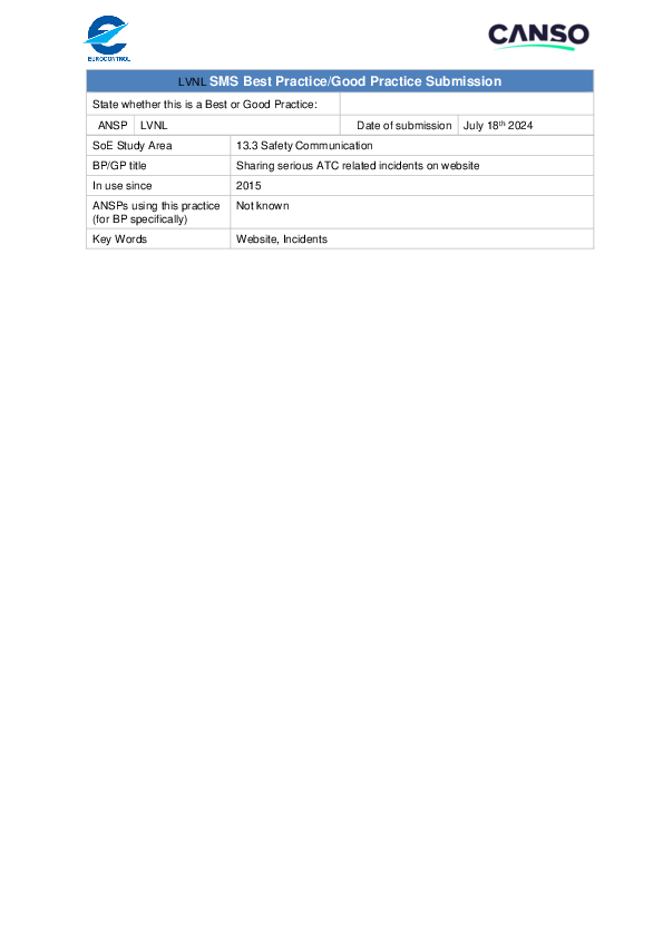 BP SA 13.3 Safety Communication - Sharing serious ATC related incidents on website