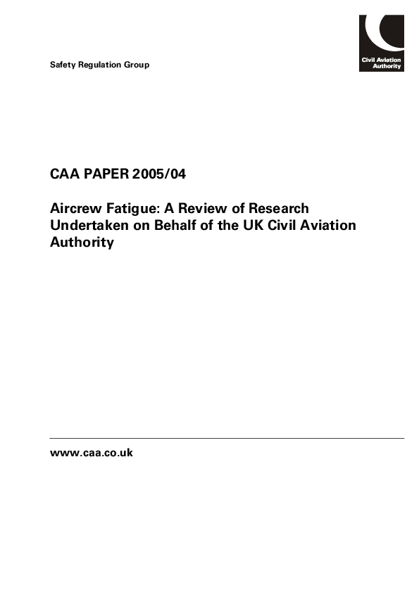 CAA Paper 2005/4 - Aircrew Fatigue - A Review of Research Undertaken on behalf of the UKCAA